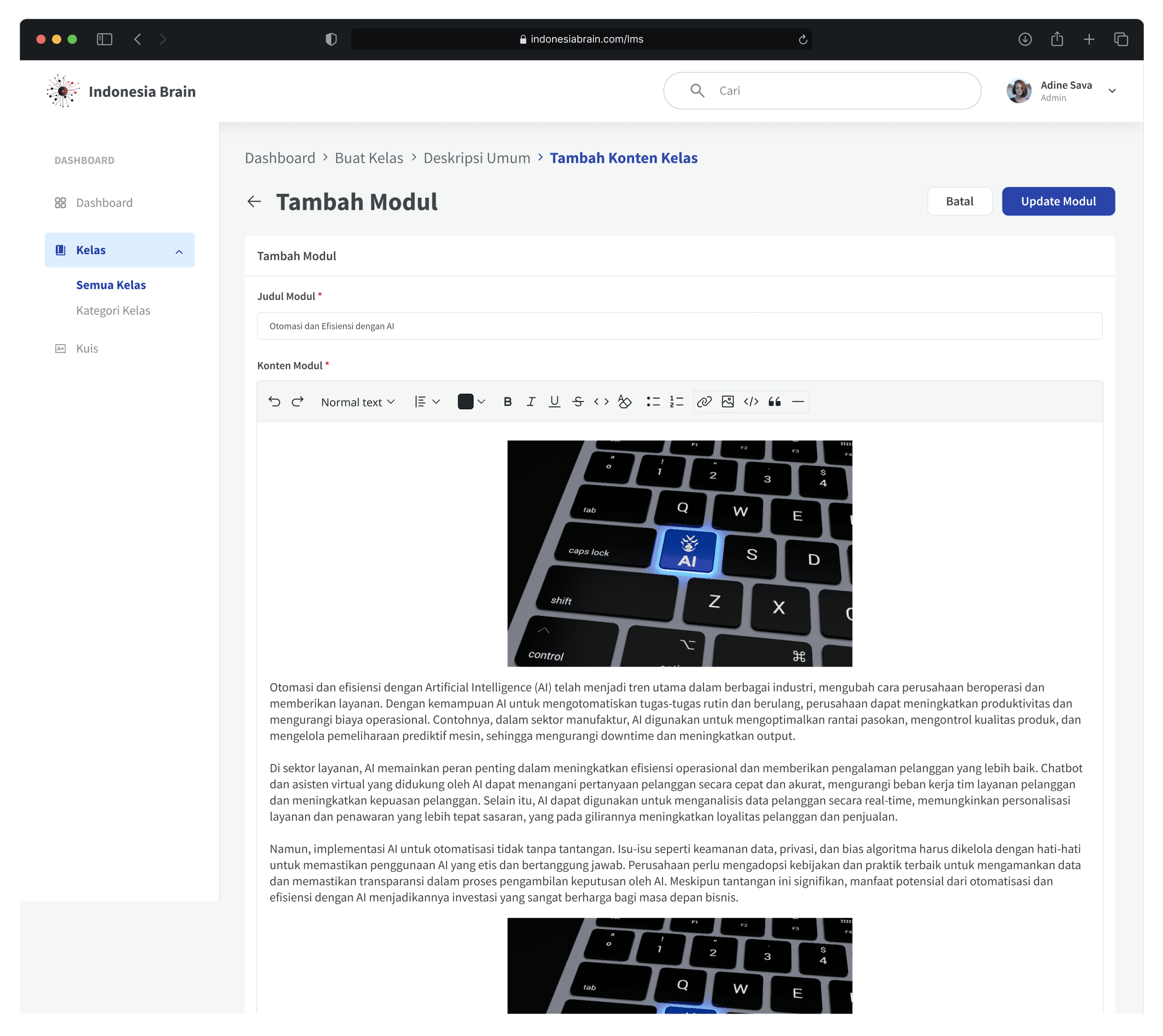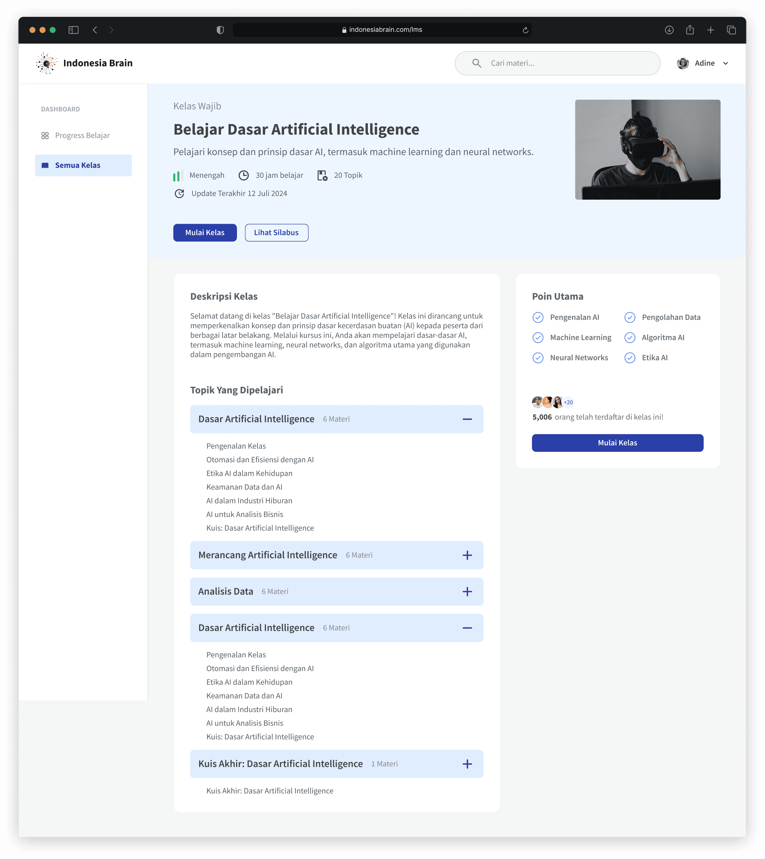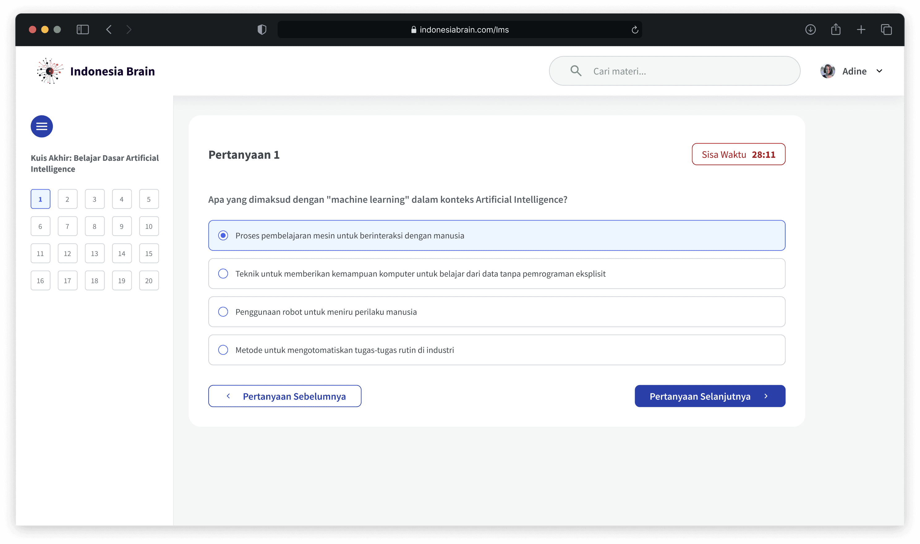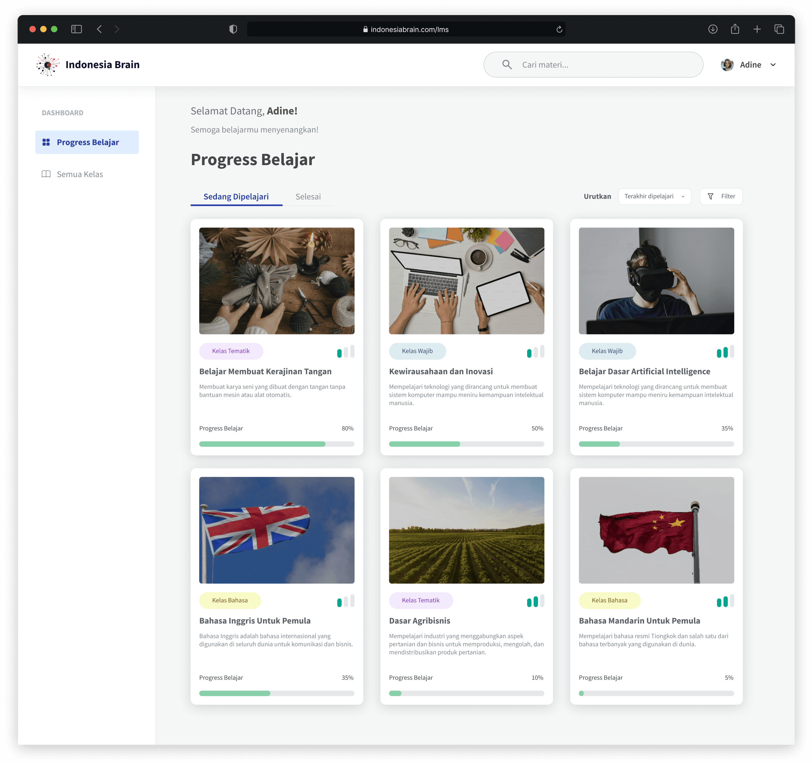 Indonesia Brain is a non-profit organization that focuses on technology, business, and public policy research. One of its products is a learning management system catered for middle to high school students.