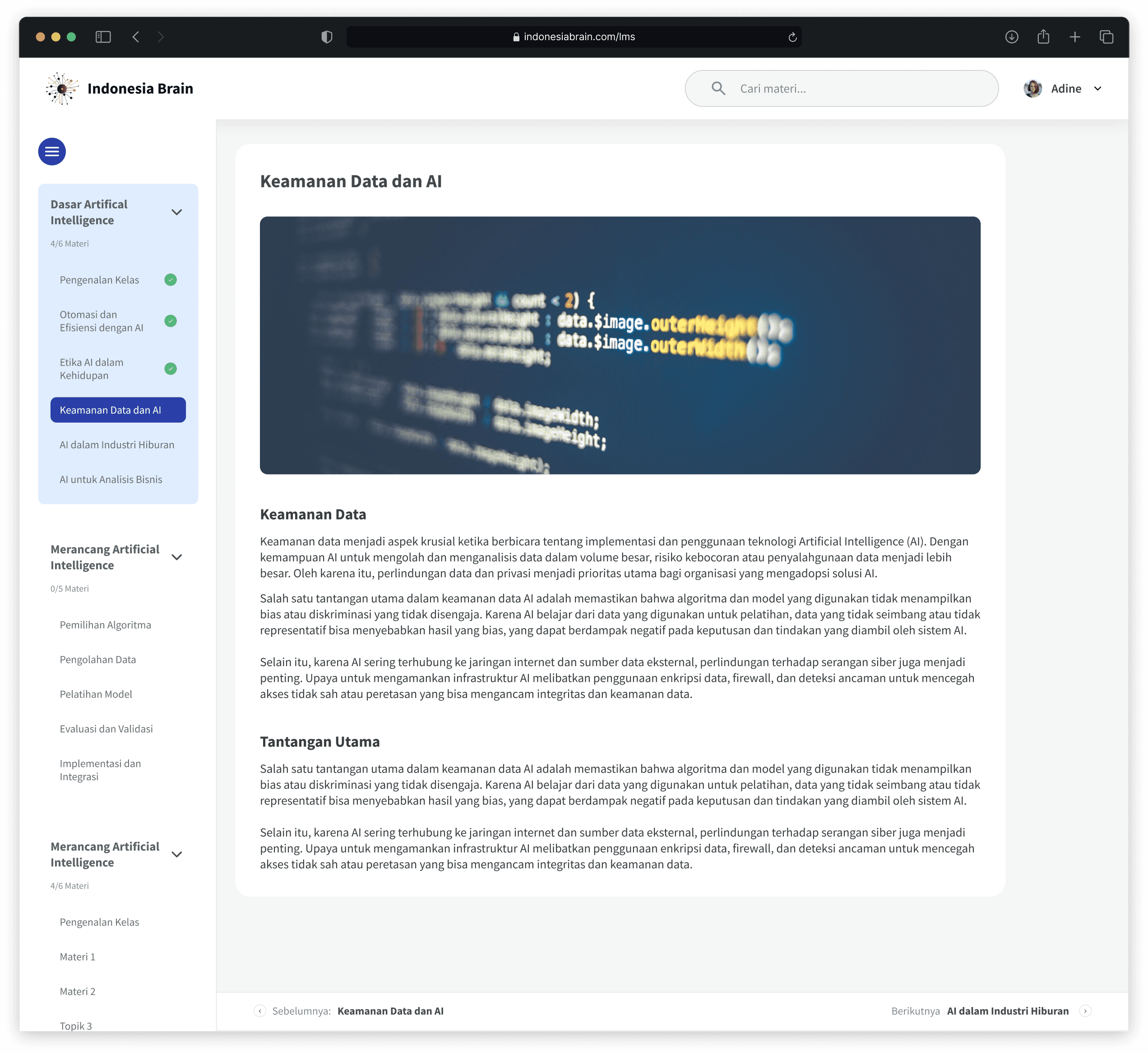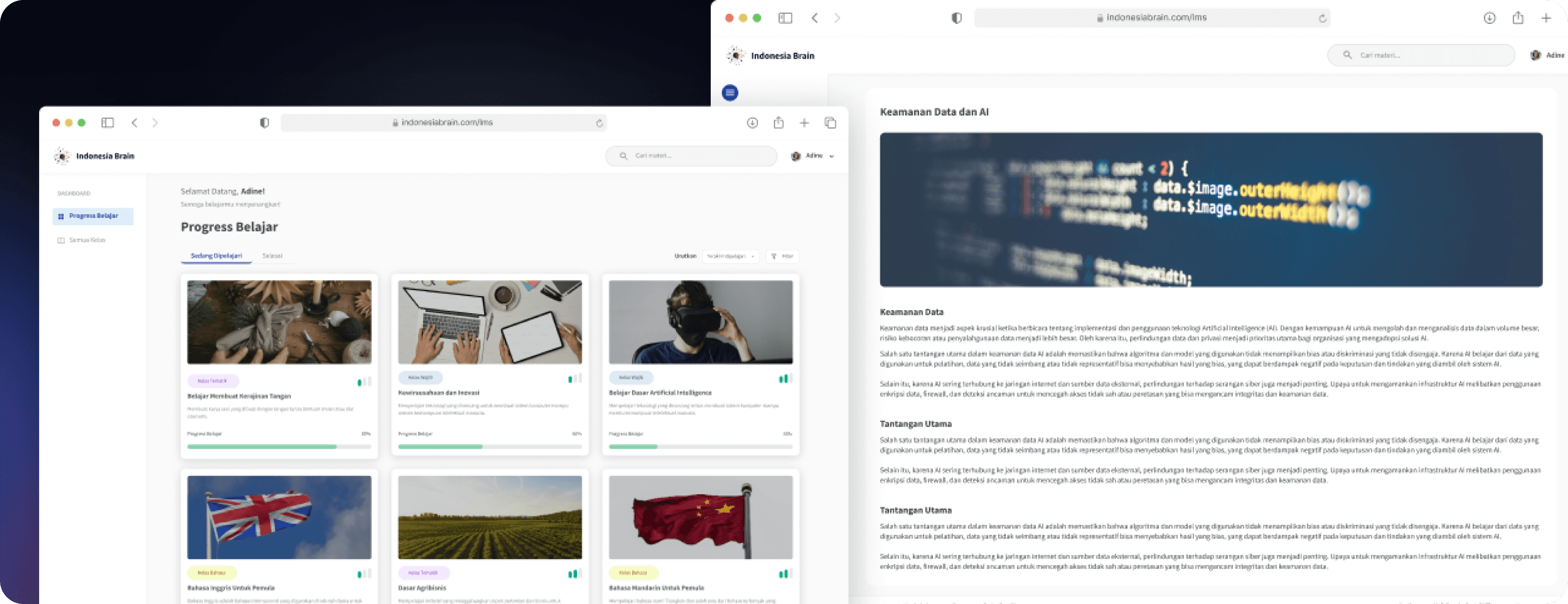 To address the growing demand for accessible and effective supplemental education, Indonesia Brain is developing a specialized learning platform for middle and high school students, in alignment with its research and development objectives. Indonesia Brain established strategic partnerships with educational institutions to provide supplementary educational content to their students.
